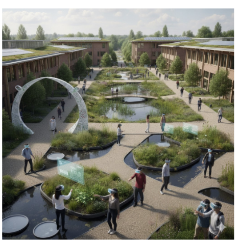 Das „Resilience Lab“ wird mit einer umfangreichen digitalen Infrastruktur ausgerüstet: Sensorik erfasst relevante Kenngrößen wie z. B. pH-Wert, Boden- und Luftfeuchte, Leitfähigkeit, Temperatur und Wasserfluss, sodass eine belastbare Wasserbilanz erstellt werden kann. Darauf aufbauend wird ein Wassermengenmanagement entwickelt, das Niederschlagsprognosen berücksichtigt, um in Trockenphasen bereits vorhandene und neu errichtete Schwammelemente präventiv zu bewässern oder bei Starkregenereignissen frühzeitig Speichervolumen zu schaffen.